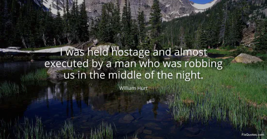 It lands with the blunt shock of a confession, the kind that strips celebrity of its protective varnish in a single breath. William Hurt’s line isn’t crafted for poetry; it’s engineered for credibility. “Held hostage” and “almost executed” are not metaphor-ready phrases. They’re legalistic, cinematic, and bodily. Coming from an actor - a profession built on pretend stakes - the specificity reads as a challenge: don’t file this under drama, file it under damage.