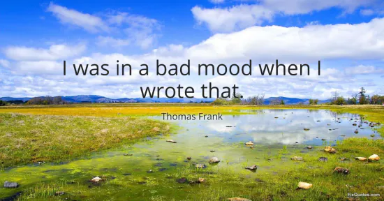 Frank, Thomas. (2026, January 16). I was in a bad mood when I wrote that. FixQuotes. https://fixquotes.com/quotes/i-was-in-a-bad-mood-when-i-wrote-that-134792/