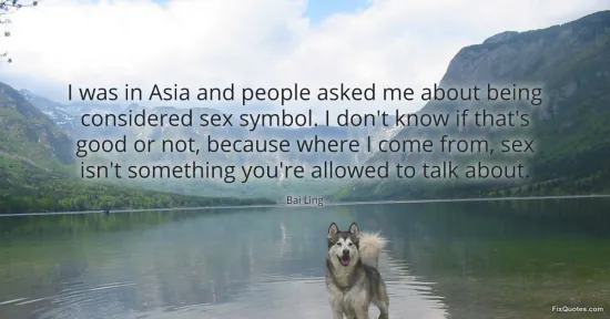 Ling, Bai. "I was in Asia and people asked me about being considered sex symbol. I don't know if that's good or not, because where I come from, sex isn't something you're allowed to talk about." FixQuotes. January 17, 2026. https://fixquotes.com/quotes/i-was-in-asia-and-people-asked-me-about-being-33899/.