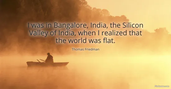 Friedman, Thomas. (2026, January 16). I was in Bangalore, India, the Silicon Valley of India, when I realized that the world was flat. FixQuotes. https://fixquotes.com/quotes/i-was-in-bangalore-india-the-silicon-valley-of-95956/