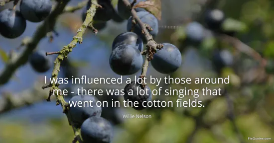 Nelson, Willie. (2026, January 15). I was influenced a lot by those around me - there was a lot of singing that went on in the cotton fields. FixQuotes. https://fixquotes.com/quotes/i-was-influenced-a-lot-by-those-around-me-there-166427/