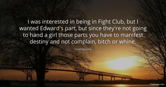 Love, Courtney. "I was interested in being in Fight Club, but I wanted Edward's part, but since they're not going to hand a girl those parts you have to manifest destiny and not complain, bitch or whine." FixQuotes. January 17, 2026. https://fixquotes.com/quotes/i-was-interested-in-being-in-fight-club-but-i-45380/.