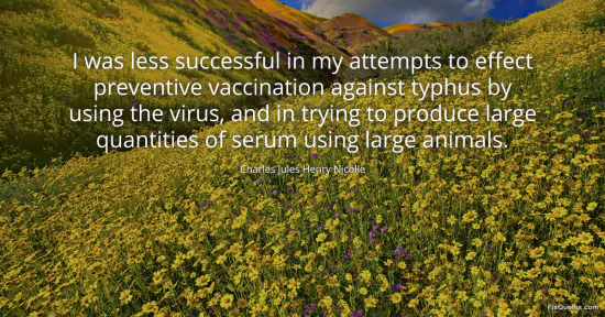 "I was less successful in my attempts to effect preventive vaccination against typhus by using the virus, and in trying to produce large quantities of serum using large animals." FixQuotes, 19 Feb. 2026, https://fixquotes.com/quotes/i-was-less-successful-in-my-attempts-to-effect-44600/. Accessed 21 Feb. 2026.