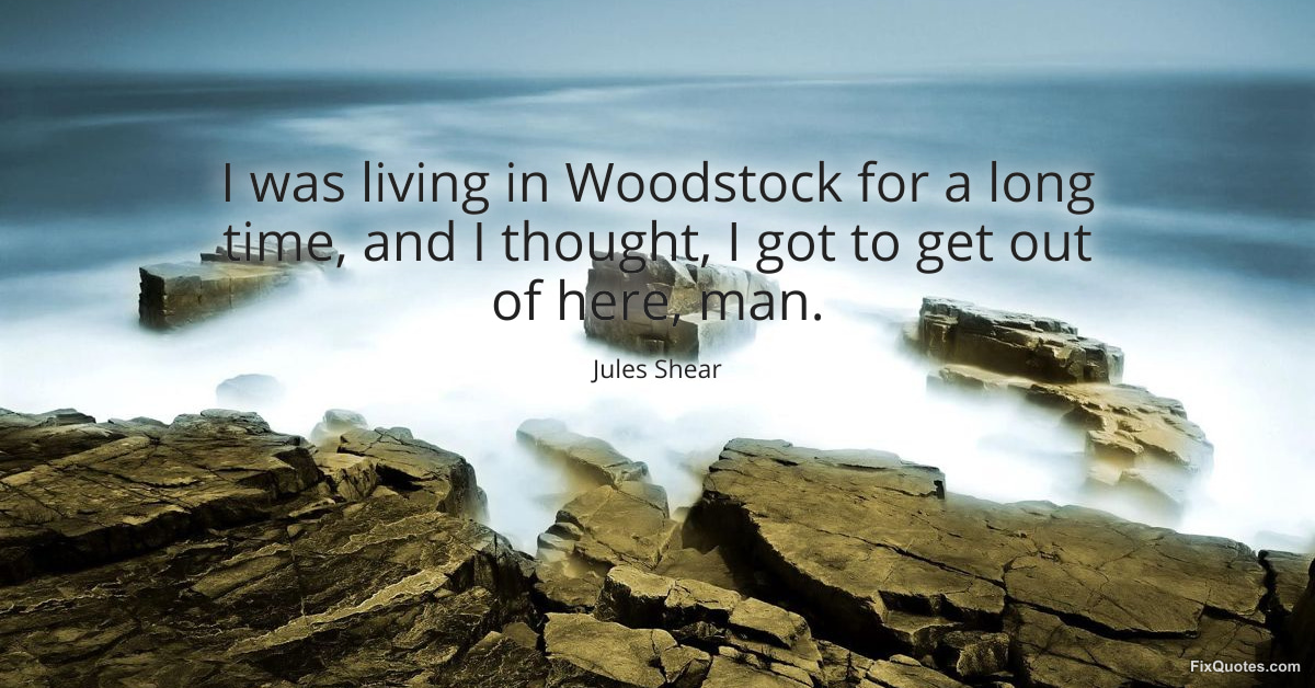 Shear, Jules. (2026, January 16). I was living in Woodstock for a long time, and I thought, I got to get out of here, man. FixQuotes. https://fixquotes.com/quotes/i-was-living-in-woodstock-for-a-long-time-and-i-87257/