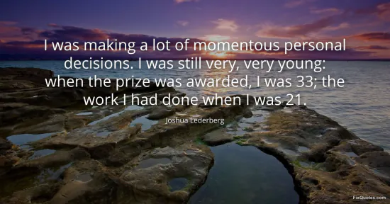 Lederberg, Joshua. (2026, February 17). I was making a lot of momentous personal decisions. I was still very, very young: when the prize was awarded, I was 33; the work I had done when I was 21. FixQuotes. https://fixquotes.com/quotes/i-was-making-a-lot-of-momentous-personal-111540/