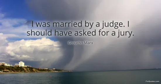 Marx, Groucho. (2026, January 15). I was married by a judge. I should have asked for a jury. FixQuotes. https://fixquotes.com/quotes/i-was-married-by-a-judge-i-should-have-asked-for-7430/