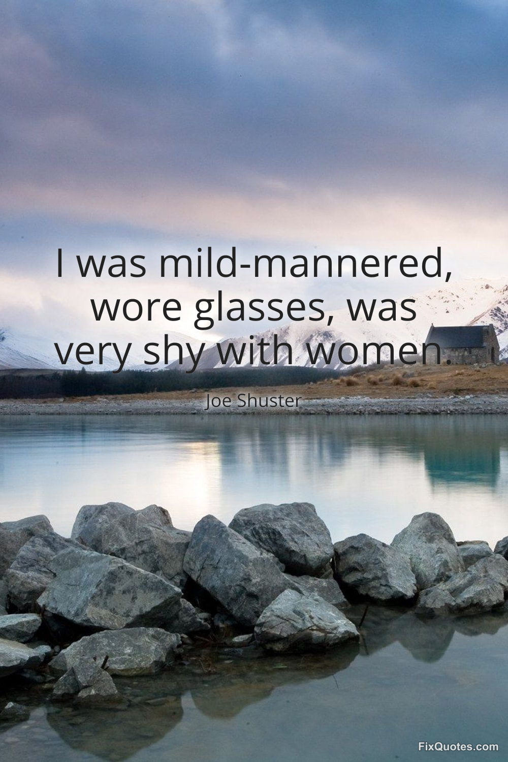 Shuster, Joe. (2026, January 17). I was mild-mannered, wore glasses, was very shy with women. FixQuotes. https://fixquotes.com/quotes/i-was-mild-mannered-wore-glasses-was-very-shy-63270/