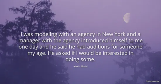 Bledel, Alexis. (2026, January 17). I was modeling with an agency in New York and a manager with the agency introduced himself to me one day and he said he had auditions for someone my age. He asked if I would be interested in doing some. FixQuotes. https://fixquotes.com/quotes/i-was-modeling-with-an-agency-in-new-york-and-a-69440/