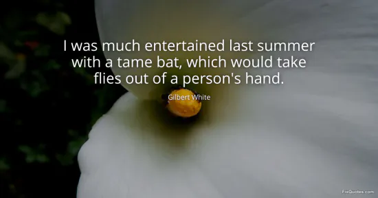 White, Gilbert. "I was much entertained last summer with a tame bat, which would take flies out of a person's hand." FixQuotes. January 17, 2026. https://fixquotes.com/quotes/i-was-much-entertained-last-summer-with-a-tame-77052/.