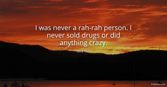 Rick, Slick. (2026, January 16). I was never a rah-rah person. I never sold drugs or did anything crazy. FixQuotes. https://fixquotes.com/quotes/i-was-never-a-rah-rah-person-i-never-sold-drugs-109912/