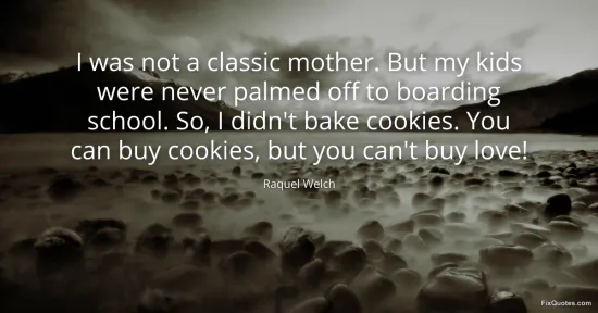 Welch, Raquel. (2026, February 18). I was not a classic mother. But my kids were never palmed off to boarding school. So, I didn't bake cookies. You can buy cookies, but you can't buy love! FixQuotes. https://fixquotes.com/quotes/i-was-not-a-classic-mother-but-my-kids-were-never-64258/