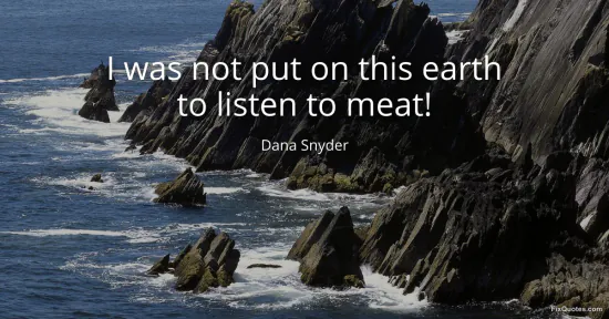 Snyder, Dana. (2026, January 14). I was not put on this earth to listen to meat! FixQuotes. https://fixquotes.com/quotes/i-was-not-put-on-this-earth-to-listen-to-meat-170717/