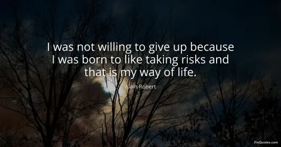 Robert, Alain. (2026, January 17). I was not willing to give up because I was born to like taking risks and that is my way of life. FixQuotes. https://fixquotes.com/quotes/i-was-not-willing-to-give-up-because-i-was-born-37334/