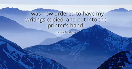 Southcott, Joanna. (2026, January 18). I was now ordered to have my writings copied, and put into the printer's hand. FixQuotes. https://fixquotes.com/quotes/i-was-now-ordered-to-have-my-writings-copied-and-12026/