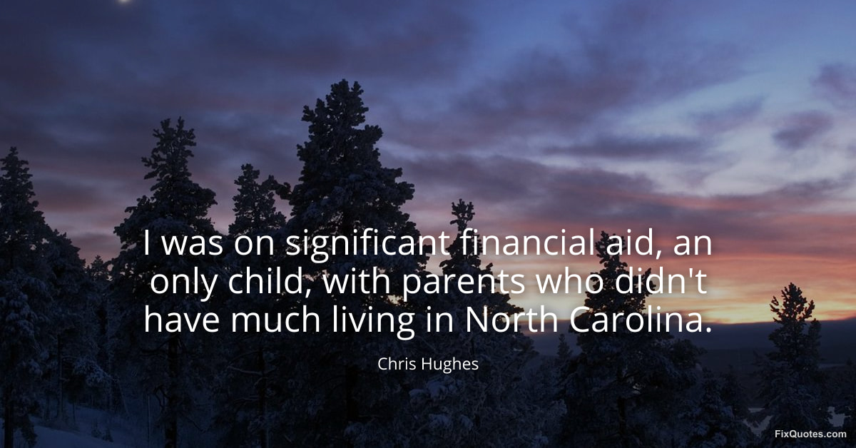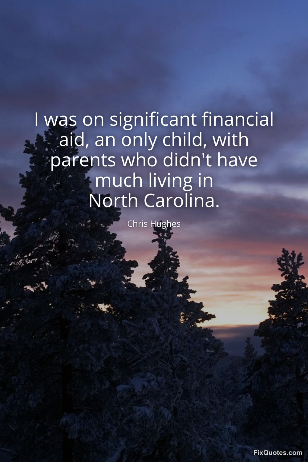 Hughes, Chris. (2026, January 15). I was on significant financial aid, an only child, with parents who didn't have much living in North Carolina. FixQuotes. https://fixquotes.com/quotes/i-was-on-significant-financial-aid-an-only-child-172735/