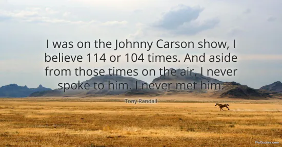 Randall, Tony. "I was on the Johnny Carson show, I believe 114 or 104 times. And aside from those times on the air, I never spoke to him. I never met him." FixQuotes. January 16, 2026. https://fixquotes.com/quotes/i-was-on-the-johnny-carson-show-i-believe-114-or-95582/.