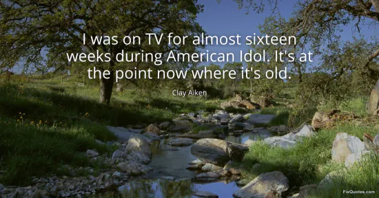 Aiken, Clay. (2026, January 15). I was on TV for almost sixteen weeks during American Idol. It's at the point now where it's old. FixQuotes. https://fixquotes.com/quotes/i-was-on-tv-for-almost-sixteen-weeks-during-145665/