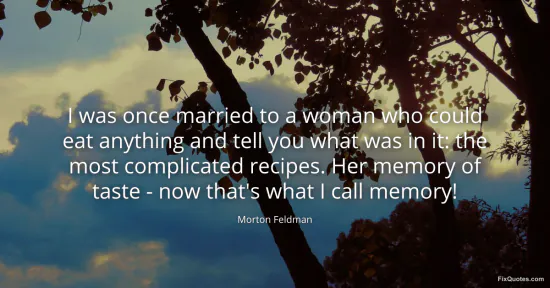 Feldman, Morton. (2026, January 16). I was once married to a woman who could eat anything and tell you what was in it: the most complicated recipes. Her memory of taste - now that's what I call memory! FixQuotes. https://fixquotes.com/quotes/i-was-once-married-to-a-woman-who-could-eat-104744/