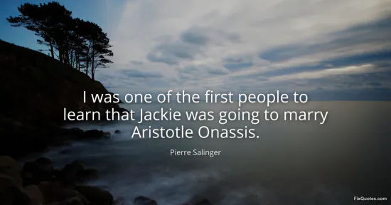 Salinger, Pierre. (2026, January 17). I was one of the first people to learn that Jackie was going to marry Aristotle Onassis. FixQuotes. https://fixquotes.com/quotes/i-was-one-of-the-first-people-to-learn-that-70947/