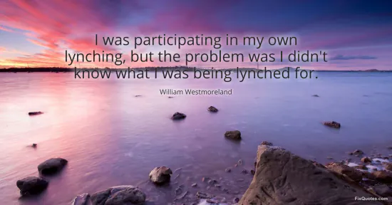 Westmoreland, William. (2026, January 15). I was participating in my own lynching, but the problem was I didn't know what I was being lynched for. FixQuotes. https://fixquotes.com/quotes/i-was-participating-in-my-own-lynching-but-the-116652/