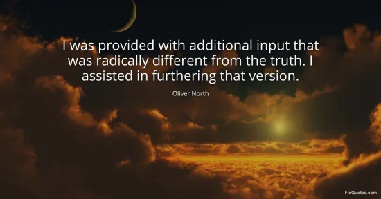 North, Oliver. (2026, January 17). I was provided with additional input that was radically different from the truth. I assisted in furthering that version. FixQuotes. https://fixquotes.com/quotes/i-was-provided-with-additional-input-that-was-71667/