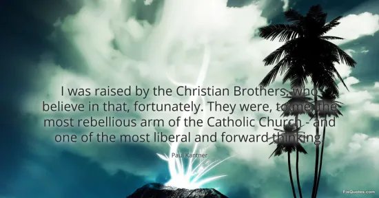 Kantner, Paul. (2026, January 16). I was raised by the Christian Brothers, who believe in that, fortunately. They were, to me, the most rebellious arm of the Catholic Church - and one of the most liberal and forward thinking. FixQuotes. https://fixquotes.com/quotes/i-was-raised-by-the-christian-brothers-who-128601/