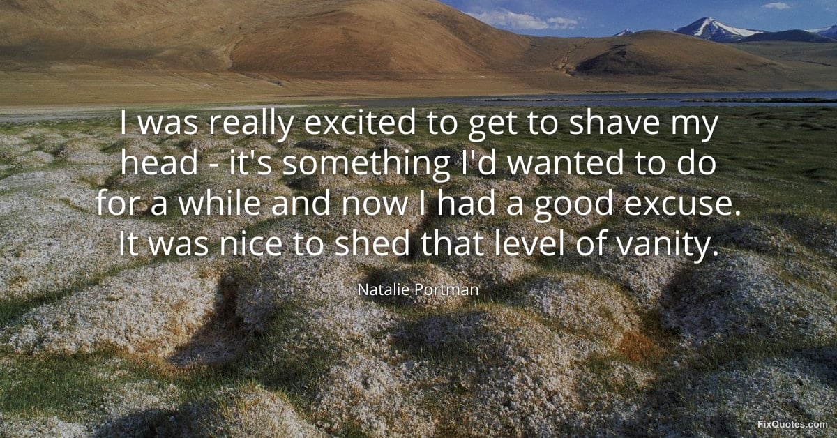 Portman, Natalie. (2026, January 16). I was really excited to get to shave my head - it's something I'd wanted to do for a while and now I had a good excuse. It was nice to shed that level of vanity. FixQuotes. https://fixquotes.com/quotes/i-was-really-excited-to-get-to-shave-my-head-100027/
