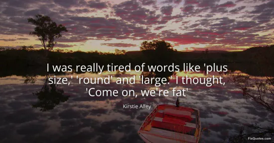Alley, Kirstie. (2026, February 16). I was really tired of words like 'plus size,' 'round' and 'large.' I thought, 'Come on, we're fat'. FixQuotes. https://fixquotes.com/quotes/i-was-really-tired-of-words-like-plus-size-round-96626/