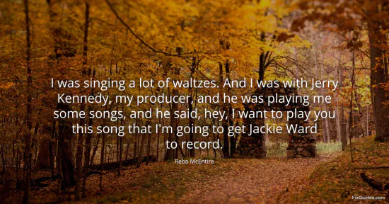 McEntire, Reba. "I was singing a lot of waltzes. And I was with Jerry Kennedy, my producer, and he was playing me some songs, and he said, hey, I want to play you this song that I'm going to get Jackie Ward to record." FixQuotes. January 17, 2026. https://fixquotes.com/quotes/i-was-singing-a-lot-of-waltzes-and-i-was-with-77510/.