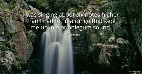 Sinatra, Nancy. "I was singing about six notes higher than I had to, in a range that kept me up in a bubblegum sound." FixQuotes. January 16, 2026. https://fixquotes.com/quotes/i-was-singing-about-six-notes-higher-than-i-had-96010/.