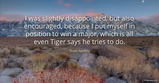 Appleby, Stuart. (2026, January 17). I was slightly disappointed, but also encouraged, because I put myself in position to win a major, which is all even Tiger says he tries to do. FixQuotes. https://fixquotes.com/quotes/i-was-slightly-disappointed-but-also-encouraged-65237/