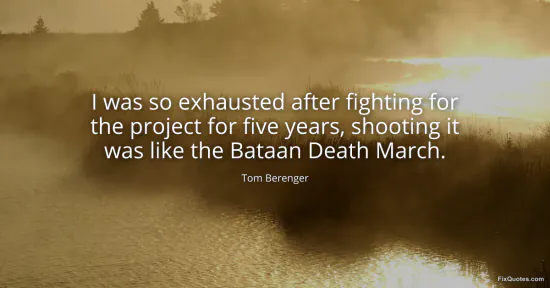 Berenger, Tom. "I was so exhausted after fighting for the project for five years, shooting it was like the Bataan Death March." FixQuotes. January 16, 2026. https://fixquotes.com/quotes/i-was-so-exhausted-after-fighting-for-the-project-98210/.