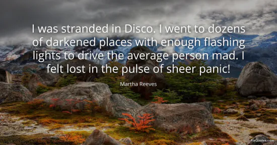 Reeves, Martha. "I was stranded in Disco. I went to dozens of darkened places with enough flashing lights to drive the average person mad. I felt lost in the pulse of sheer panic!" FixQuotes. February 18, 2026. https://fixquotes.com/quotes/i-was-stranded-in-disco-i-went-to-dozens-of-82375/.