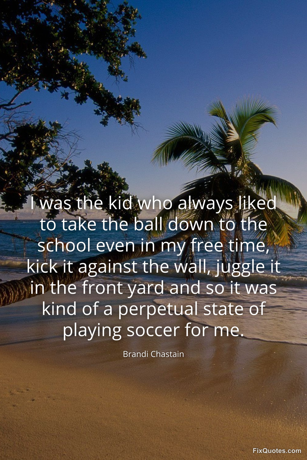 Chastain, Brandi. (2026, January 16). I was the kid who always liked to take the ball down to the school even in my free time, kick it against the wall, juggle it in the front yard and so it was kind of a perpetual state of playing soccer for me. FixQuotes. https://fixquotes.com/quotes/i-was-the-kid-who-always-liked-to-take-the-ball-109830/