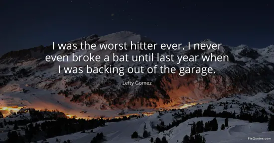 Gomez, Lefty. (2026, January 15). I was the worst hitter ever. I never even broke a bat until last year when I was backing out of the garage. FixQuotes. https://fixquotes.com/quotes/i-was-the-worst-hitter-ever-i-never-even-broke-a-170394/