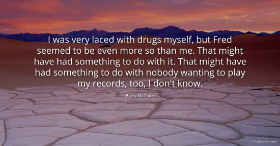 McGuire, Barry. "I was very laced with drugs myself, but Fred seemed to be even more so than me. That might have had something to do with it. That might have had something to do with nobody wanting to play my records, too, I don't know." FixQuotes. January 17, 2026. https://fixquotes.com/quotes/i-was-very-laced-with-drugs-myself-but-fred-36977/.