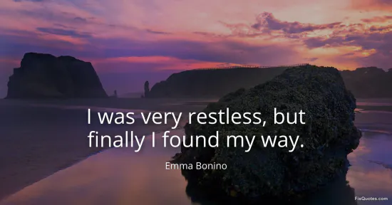 Bonino, Emma. "I was very restless, but finally I found my way." FixQuotes. January 18, 2026. https://fixquotes.com/quotes/i-was-very-restless-but-finally-i-found-my-way-18586/.