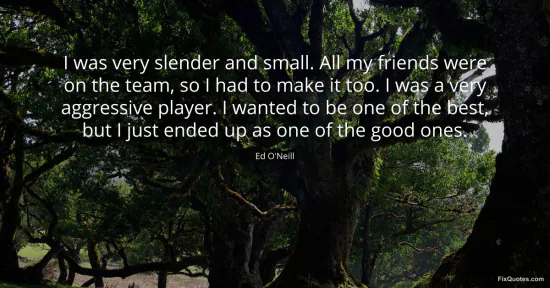 O'Neill, Ed. "I was very slender and small. All my friends were on the team, so I had to make it too. I was a very aggressive player. I wanted to be one of the best, but I just ended up as one of the good ones." FixQuotes. January 17, 2026. https://fixquotes.com/quotes/i-was-very-slender-and-small-all-my-friends-were-50676/.