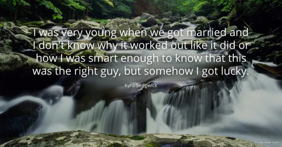 Sedgwick, Kyra. "I was very young when we got married and I don't know why it worked out like it did or how I was smart enough to know that this was the right guy, but somehow I got lucky." FixQuotes. January 17, 2026. https://fixquotes.com/quotes/i-was-very-young-when-we-got-married-and-i-dont-64357/.