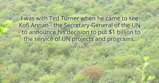 Strong, Maurice. "I was with Ted Turner when he came to see Kofi Annan - the Secretary-General of the UN - to announce his decision to put $1 billion to the service of UN projects and programs." FixQuotes. January 15, 2026. https://fixquotes.com/quotes/i-was-with-ted-turner-when-he-came-to-see-kofi-88805/.