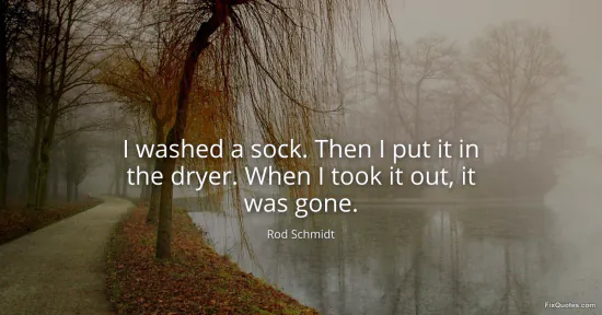 Schmidt, Rod. (2026, January 18). I washed a sock. Then I put it in the dryer. When I took it out, it was gone. FixQuotes. https://fixquotes.com/quotes/i-washed-a-sock-then-i-put-it-in-the-dryer-when-i-1577/