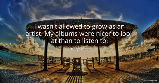 Sinatra, Nancy. "I wasn't allowed to grow as an artist. My albums were nicer to look at than to listen to." FixQuotes. January 15, 2026. https://fixquotes.com/quotes/i-wasnt-allowed-to-grow-as-an-artist-my-albums-151090/.