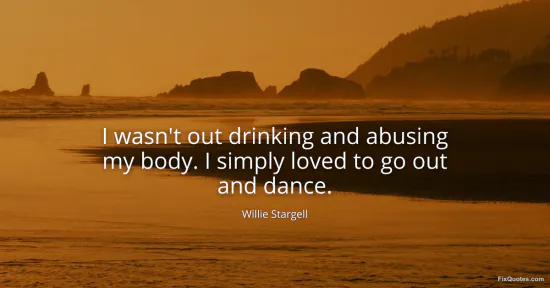 Stargell, Willie. (2026, January 16). I wasn't out drinking and abusing my body. I simply loved to go out and dance. FixQuotes. https://fixquotes.com/quotes/i-wasnt-out-drinking-and-abusing-my-body-i-simply-96721/