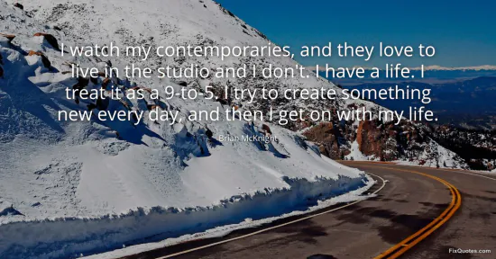 McKnight, Brian. (2026, January 15). I watch my contemporaries, and they love to live in the studio and I don't. I have a life. I treat it as a 9-to-5. I try to create something new every day, and then I get on with my life. FixQuotes. https://fixquotes.com/quotes/i-watch-my-contemporaries-and-they-love-to-live-157860/