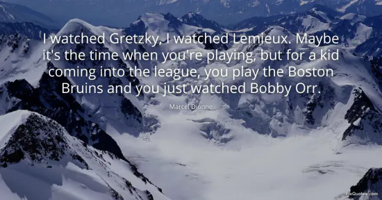 Dionne, Marcel. "I watched Gretzky, I watched Lemieux. Maybe it's the time when you're playing, but for a kid coming into the league, you play the Boston Bruins and you just watched Bobby Orr." FixQuotes. January 16, 2026. https://fixquotes.com/quotes/i-watched-gretzky-i-watched-lemieux-maybe-its-the-134125/.