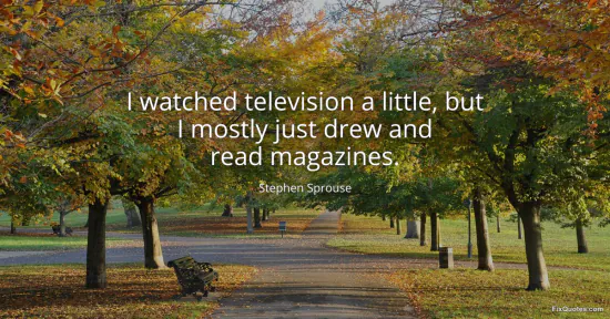 Sprouse, Stephen. (2026, January 16). I watched television a little, but I mostly just drew and read magazines. FixQuotes. https://fixquotes.com/quotes/i-watched-television-a-little-but-i-mostly-just-95112/