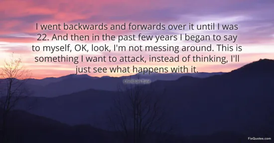 "I went backwards and forwards over it until I was 22. And then in the past few years I began to say to myself, OK, look, I'm not messing around. This is something I want to attack, instead of thinking, I'll just see what happens with it." FixQuotes, 15 Jan. 2026, https://fixquotes.com/quotes/i-went-backwards-and-forwards-over-it-until-i-was-140420/. Accessed 5 Feb. 2026.