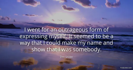 Snider, Dee. (2026, January 16). I went for an outrageous form of expressing myself. It seemed to be a way that I could make my name and show that I was somebody. FixQuotes. https://fixquotes.com/quotes/i-went-for-an-outrageous-form-of-expressing-111278/