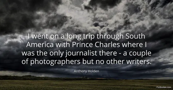 Holden, Anthony. (2026, January 18). I went on a long trip through South America with Prince Charles where I was the only journalist there - a couple of photographers but no other writers. FixQuotes. https://fixquotes.com/quotes/i-went-on-a-long-trip-through-south-america-with-6238/