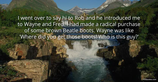 Davis, Michael. (2026, February 16). I went over to say hi to Rob and he introduced me to Wayne and Fred. I had made a radical purchase of some brown Beatle boots. Wayne was like 'Where did you get those boots! Who is this guy?'. FixQuotes. https://fixquotes.com/quotes/i-went-over-to-say-hi-to-rob-and-he-introduced-me-127763/